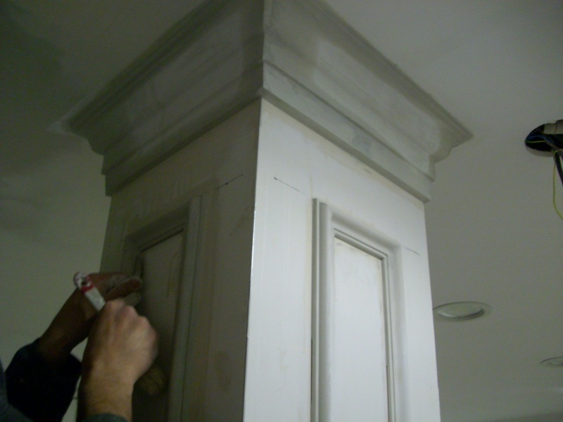 Using gypsum plaster profile as a capital is a good solution for all types of square columns including square columns with different width of the sides.